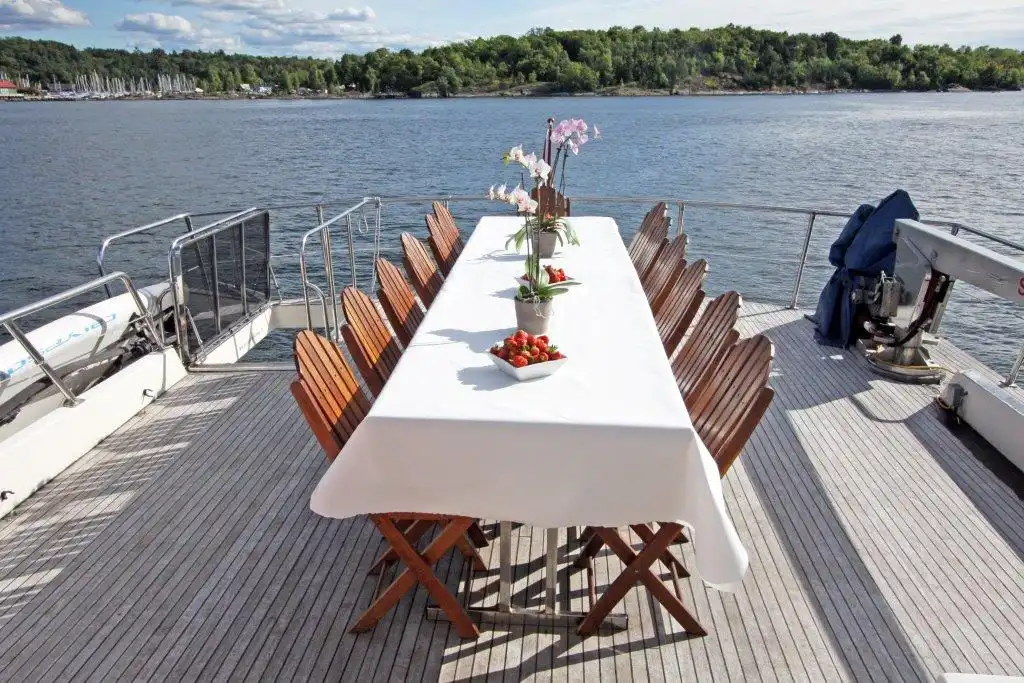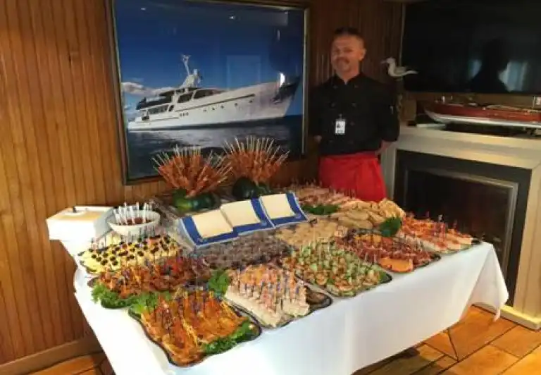 Våre cateringpartnere tilbyr alt fra smakfulle tapasretter til elegante tre-retters menyer. Nyt maten mens du beundrer utsikten over Oslofjorden. Drikke må kjøpes ombord, fartøyene flytende restauranter med bevilling.